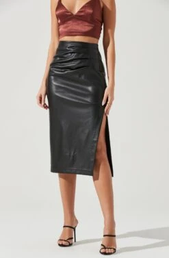 The Amiah Shorts feature a high waist fit that leads to a plated front. Front zip closure. Belt loops. Functional side pockets.