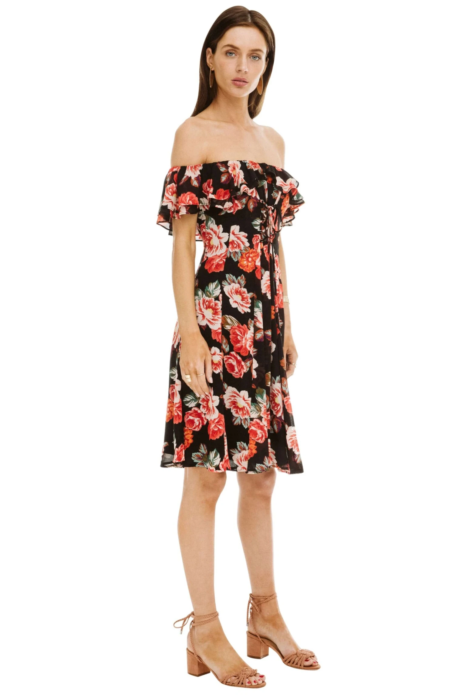 100% Polyester, Length: 40 3/16″ (Size M), Zipper Closure, Dry Clean Only, Floral Off Shoulder Dress, Model is Wearing Size S, Model’s Measurements: Height 5’10” // Bust 31″ // Waist 24″ // Hips 33.5″, Fits True to Size, Style#ACDR95255