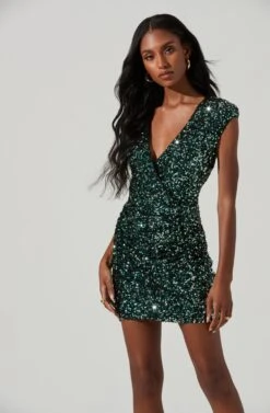 Dance the night away. This fun skirt features an eye-catching sequin construction with a high waist, ruched detailing and abbreviated hem.