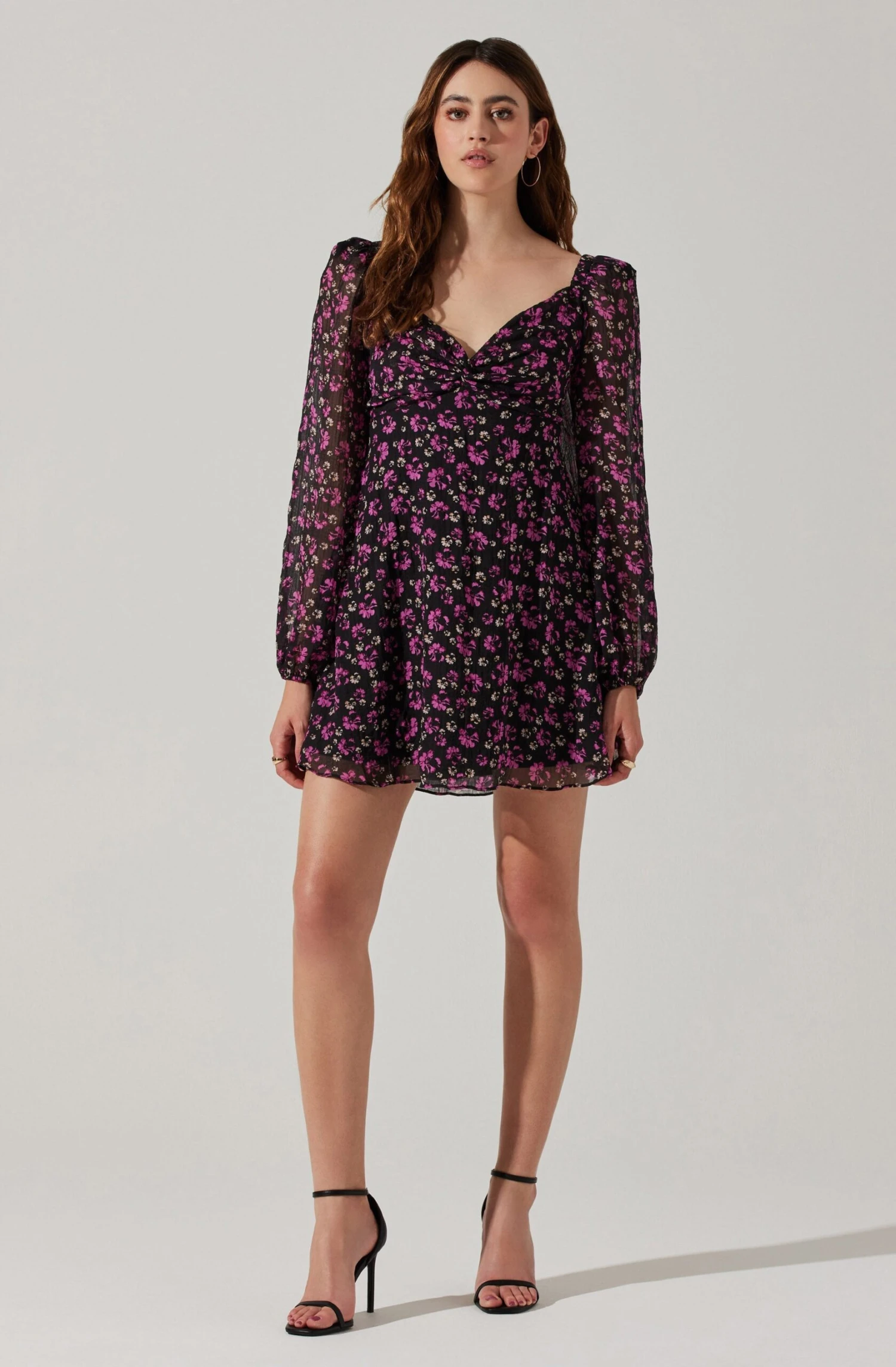 SKU: YXN0C 1695264200 Category: Dresses Tags: 23.07NRD, Bachelorette, Bump, Date night, Fall Transition, Garden, GNO, GOW, Honeymoon, Rehearsal dinner, SHOPALL, Shower, TO_BE_MERGED, Vt::Dresses::Dress Length::Mini, Vt::Dresses::Neckline::V Neck, Vt::Dresses::Occasion::Brunch, Vt::Dresses::Occasion::Cocktail Party, Vt::Dresses::Occasion::Party, Vt::Dresses::Pattern::Floral, Vt::Dresses::Pattern::Floral Small, Vt::Dresses::Sleeve Length::Long Sleeve, Vt::Dresses::Style::Classic, Vt::Dresses::Type::Flare