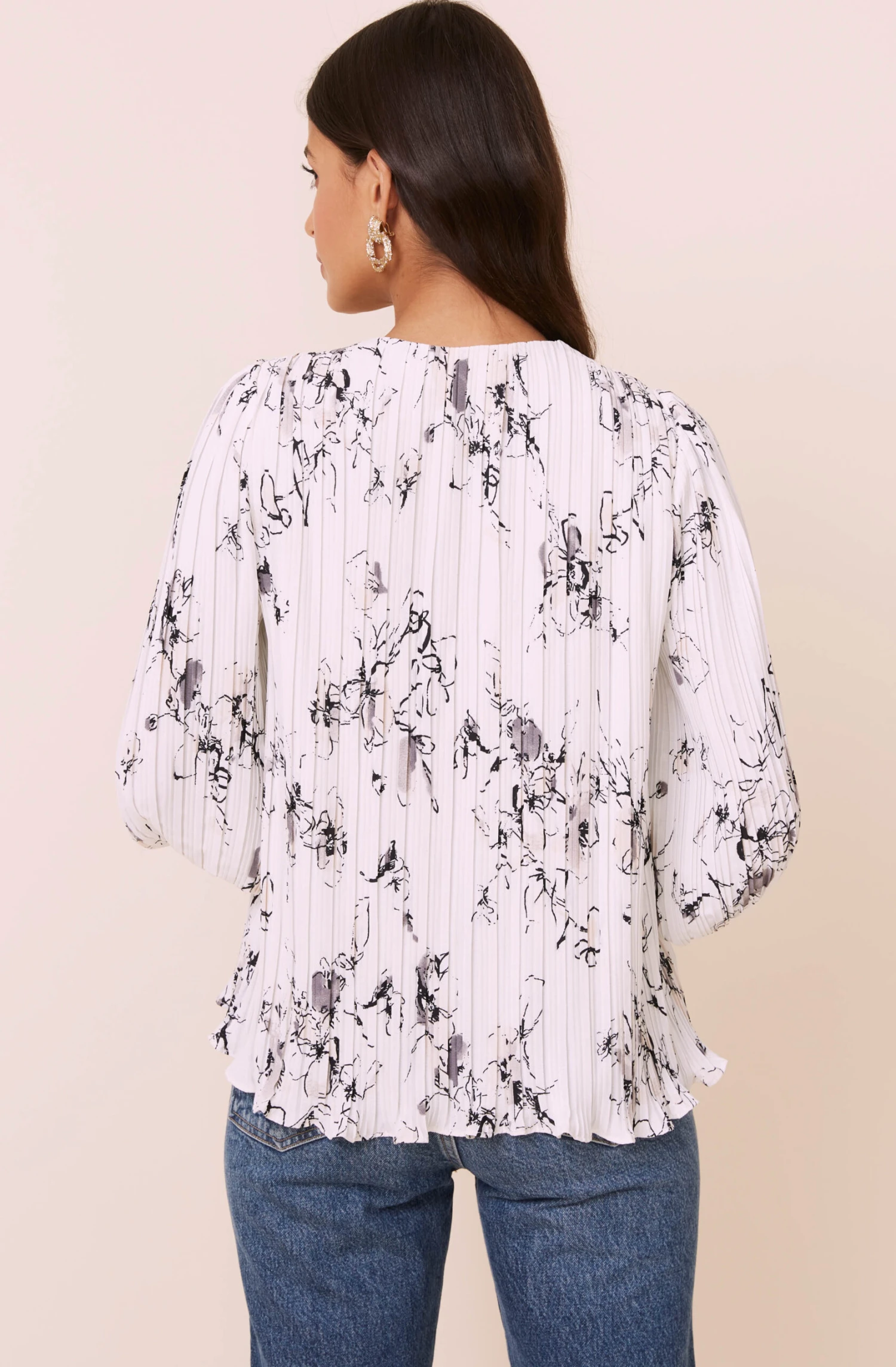 Chic and casual, this top is perfect for every day! It features a V neckline that descends to a relaxed bodice with plisse construction. Long puff sleeves. Statement floral print.