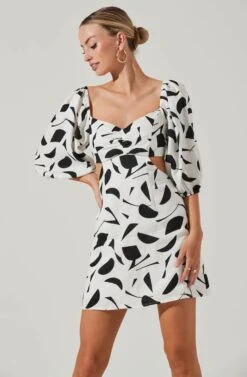 Heather Abstract Print Cutout Bubble Sleeve Mini Dress