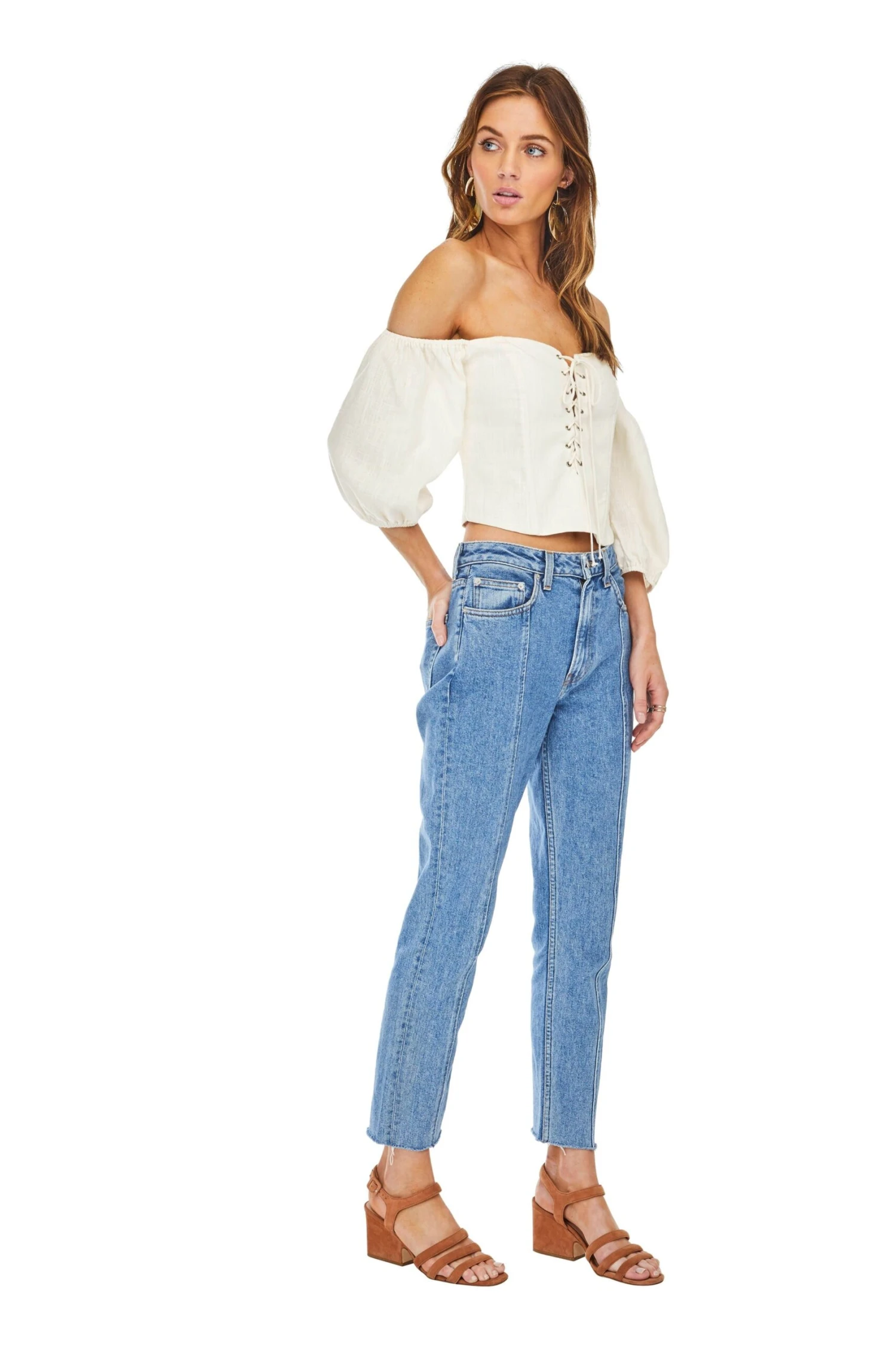 100% Rayon, Length: 18 1/4″ (Size M), Dry Clean Only, Off Shoulder, Lace Up Blouse, Model is Wearing Size S, Model’s Measurements: Height 5’10” // Bust 32″ // Waist 24″ // Hips 34″, Fits True to Size, Style#ACT13259B