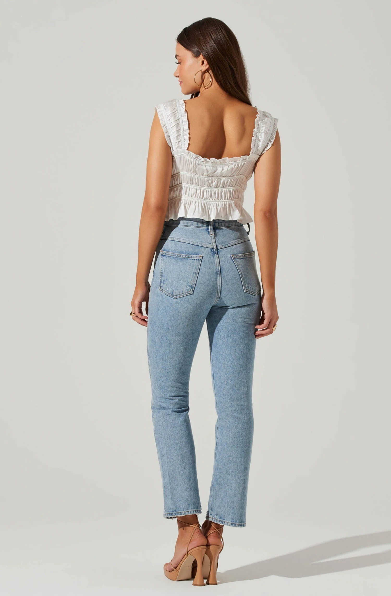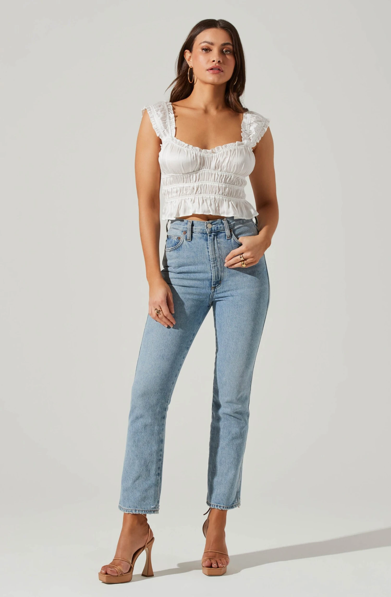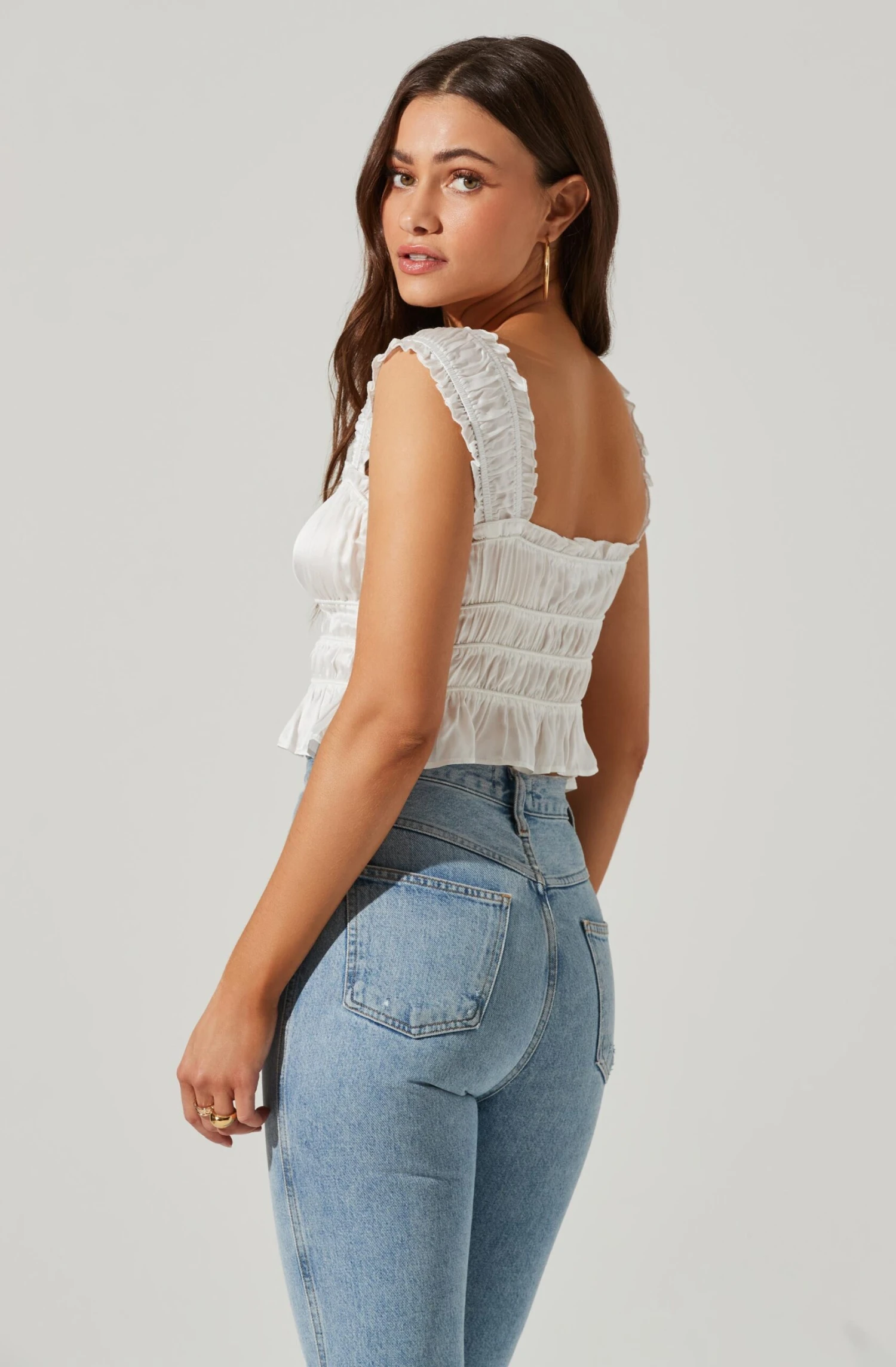 The Rosita Top features a satin finish. Sweetheart neckline leads to a smocked design throughout. Subtle peplum hem.