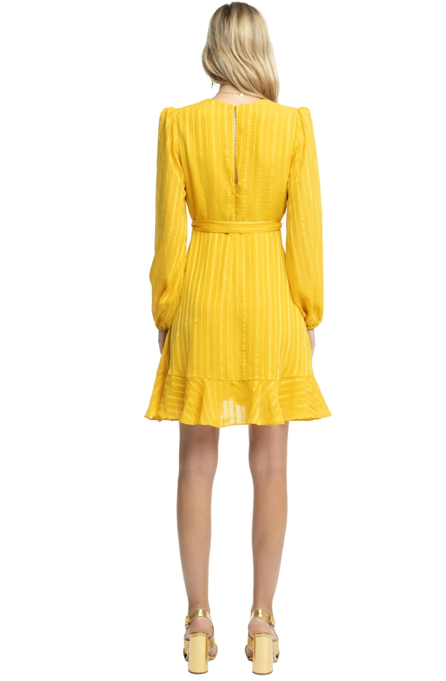 100% Polyester, Length: 36 1/4″ (Size M), Zipper Closure, Dry Clean Only, Wrap Dress, Ruffle Accent, Model is Wearing Size S, Model’s Measurements: Height 5’9″ // Bust 32″ // Waist 24″ // Hips 34.5″, Fits True to Size, Style#ACDR94955